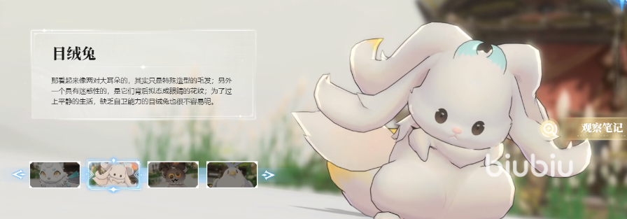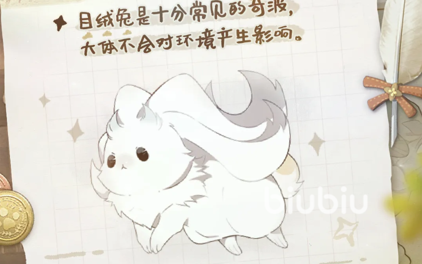 目绒兔是《蓝色星原旅谣》中极具辨识度的光属性奇波,外形以泪眼萌态为设计核心,双侧视角呈现四耳错落结构,性格设定为胆小温顺,体型娇小,处于幼年成长阶段。该角色定位为团队向治疗兼功能性辅助,在实战中承担关键续航与节奏干扰作用。
