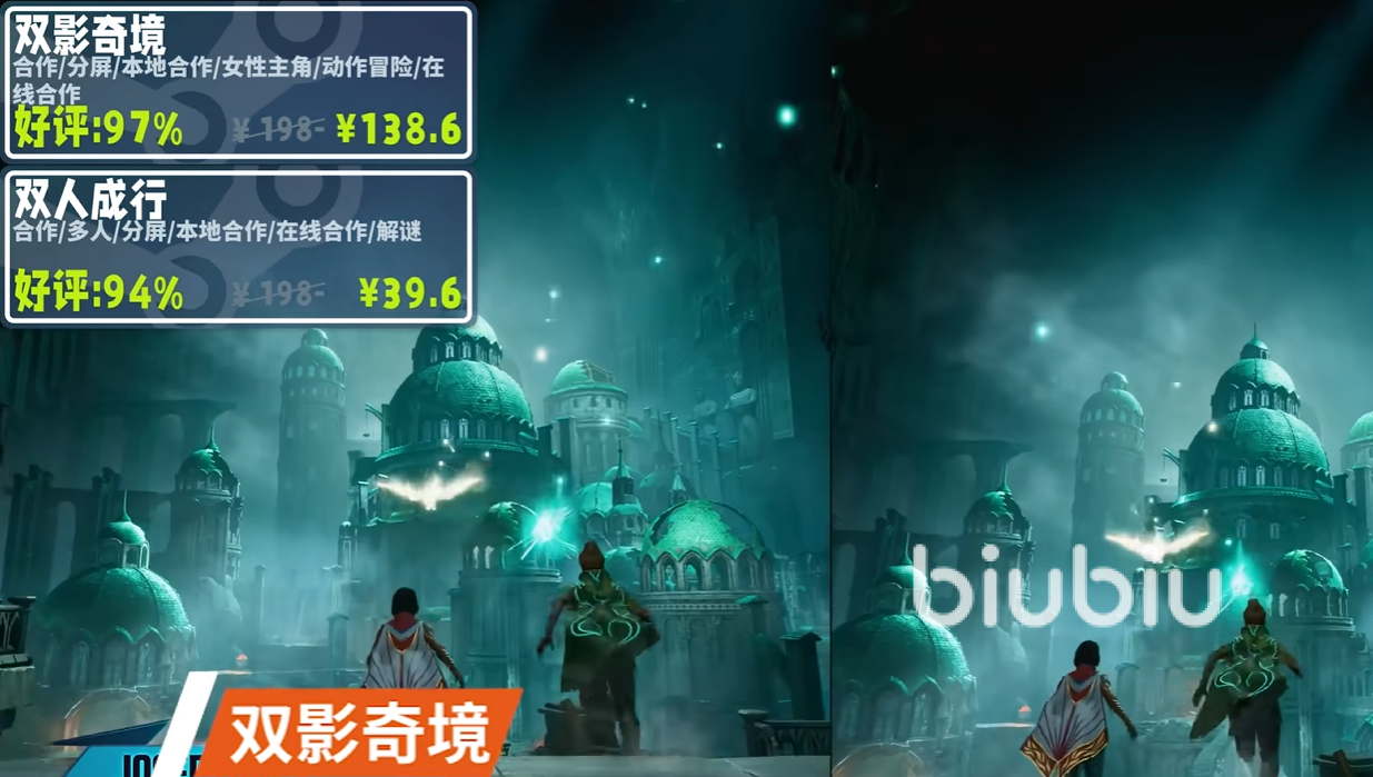 超夯的双人合作游戏,高品质内容。前者曾荣获年度最佳游戏,售价目前最低只需39.6元,后者是集奇幻以及科幻两者元素,无缝切换,体验感足够刺激,现在折后价格为138.6元可以考虑购入。