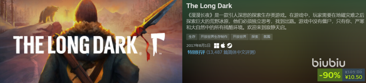 10.5元就能购买一个可引人深思的探索生存游戏,并且内容还很丰富,这不就赚到了。玩家需要在地磁灾难爆发之后的地球,于荒野冰原当中 ,挑战大自然的残酷环境,艰难求生。