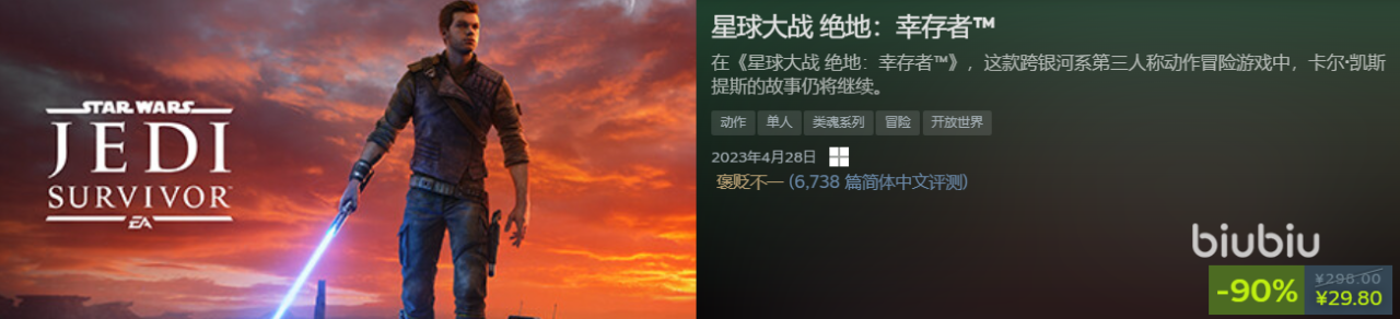 星球大战影视系列在全世界范围内都知名,观众看的热血沸腾恨不得自己化身成绝地武士,现在机会来了,花费29.8元就能购入这款游戏成为超强绝地战士,