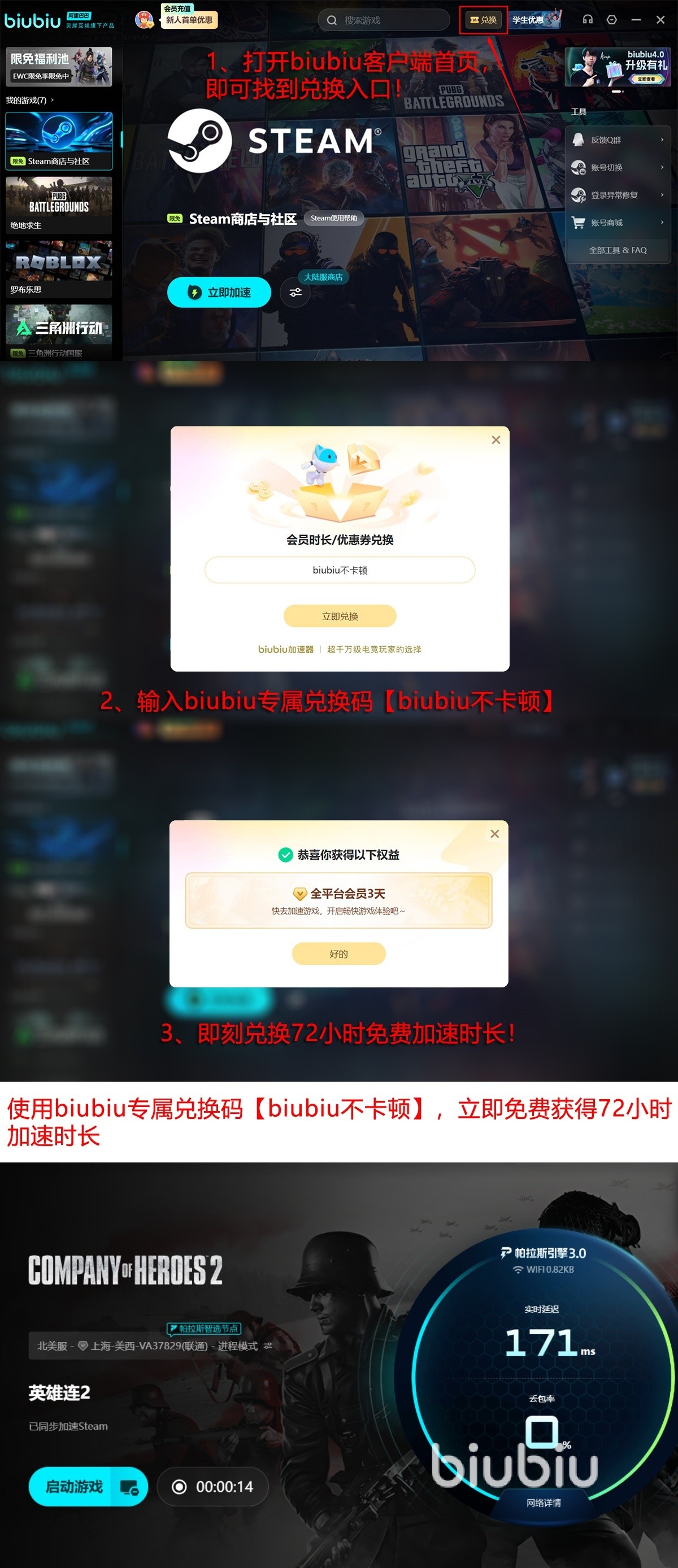 biubiu加速器还为玩家们提供超级贴心的服务,新人注册就送一天免费使用加速功能的特权。为了回馈大家,只要在首页输入兑换码【biubiu不卡顿】,无论是新用户,还是老用户,都可以额外再获得三天免费使用加速的福利。同时,该平台最近新增了学生福利,但条件要求较为严苛,需要验证自身的学信网身份,才能有资格享受该特惠。