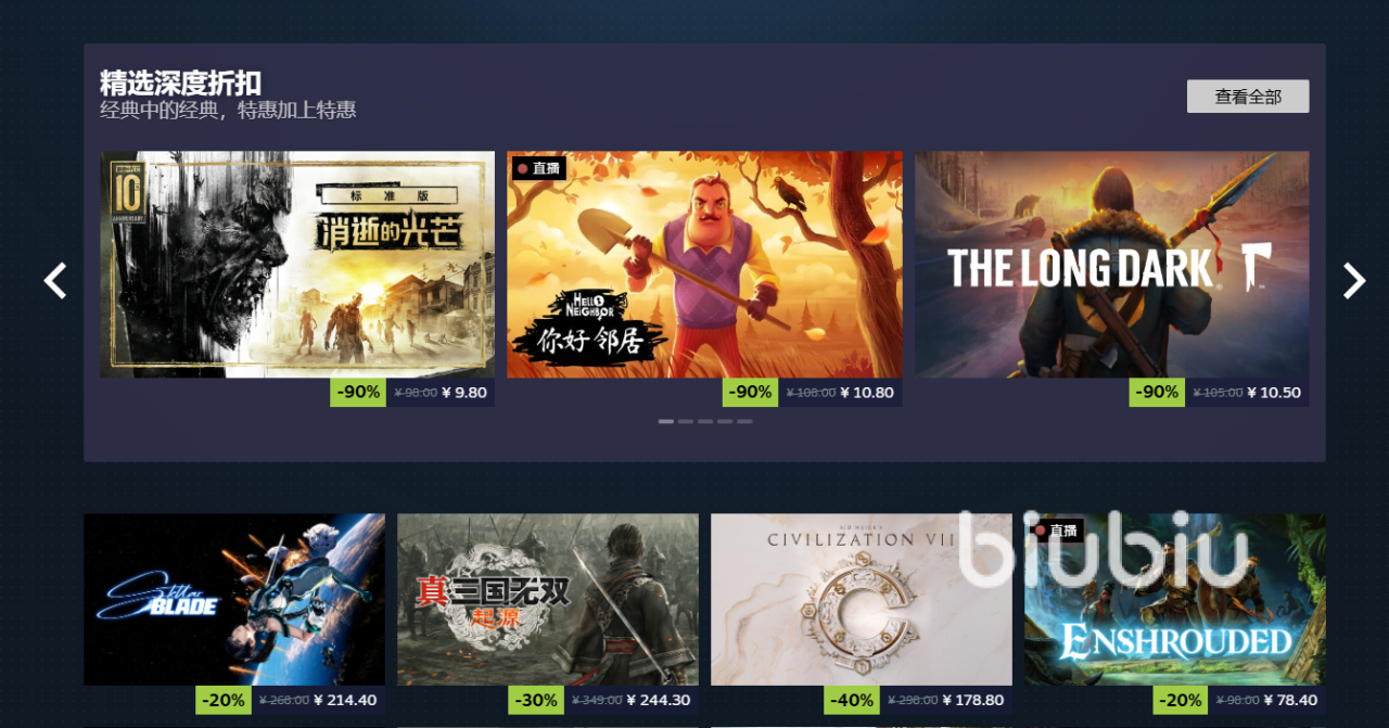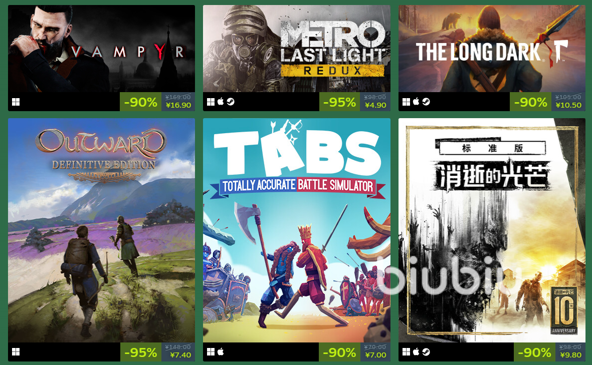 春促作为steam四大季节促销之一,折扣力度不用担心,肯定是大的,很多发售比较久的游戏会选择1折出售,有些推出没多久的热游也会打六七折,也算不错了。比如消逝的光芒就打1折,1杯奶茶钱就能买入,折扣怎么能不算大。