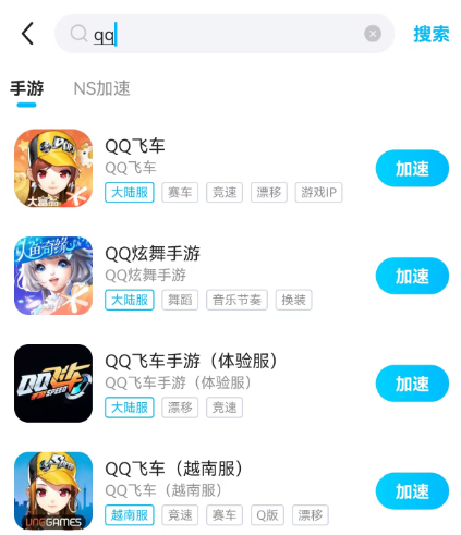 biubiu自有帕拉斯引擎还是很强的,研发的时候背靠大厂阿里巴巴灵犀互娱,技术成熟,加速效果好,并且服务对象是包含海内外热门手游的。光qq飞车一个就能享受分类对应的加速专页,不管玩什么版本或者服务器都能获得助力。