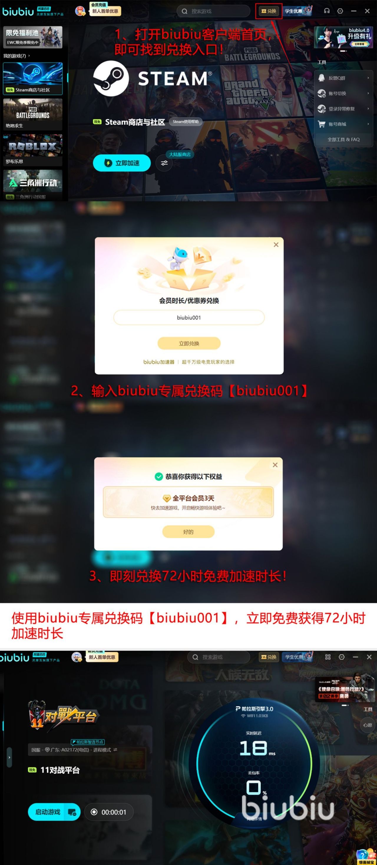 电竞领域当中冠军小叮当也成为了此应用的产品代言人以及体验官,早在之前就已经为大家进行了得以验证,经过全方位的日常训练之后就给予一致好评,还呼吁大家直接点击链接就能轻松体验,目前还给大家带来了很多专属的福利,就比如当大家首次利用账号成功注册之后,就可以立即获得24小时的免费加速特权,而另外一种就是属于通用的福利,那就是所有人都可用【biubiu001】,领取三天的免费加速特权,首次使用的人群就可拥有长达96小时。