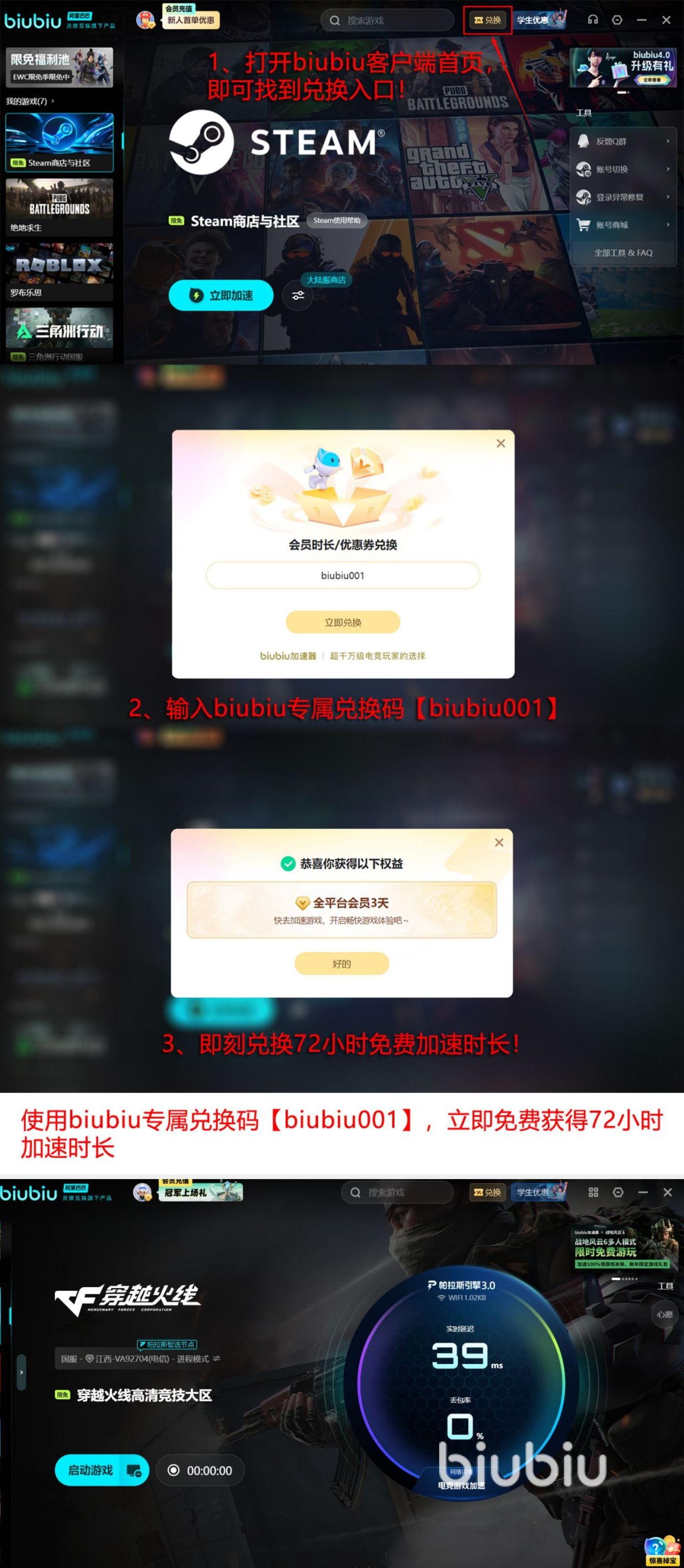 在各种智能技术方面,都要比整个领域当中拥有着突出的技术水平,每一个玩家在体验需要联网的游戏时,都有着极高的稳定性。为了让更多的人都可以免费的进行体验,如今的福利也是非常大的,因为新用户注册登录,就能获得24小时免费加速时长,还可通过输入【biubiu001】的方式,获得三天免费加速时长。新用户在领取到了24小时以后,可以继续领取三天,共计可以领取到96个小时。
