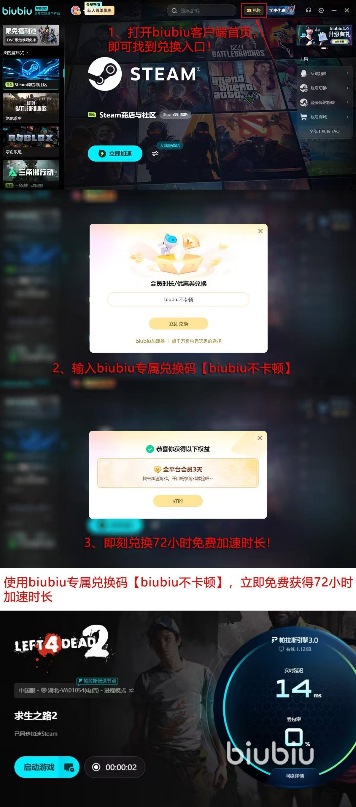 2026年03月24日 16:55 来源:破甲只铁甲贝求生之路2一直掉线怎么办?这是个第一人称的,以生存为主题的恐怖射击游戏,扮演幸存者的大家,在游戏里穿越多个地区,需要对抗成群的感染者,并参与多场战役,武器很多样,每天都在进行紧张刺激的个性化挑战,在游玩过程中,本身就已经面临较高生存压力,然而还经常有玩家遇到掉线的情况,再次进入其中,战局都已经发生翻天覆地的变化,很是影响大家的生存进度,体验感也会非常不好,朋友们自然都想解决这个问题,其实有个很好的解决方案就是biubiu,这是业内综合性能最好的加速工具,适合改变一系列网络引起的掉线,不流畅等问题。