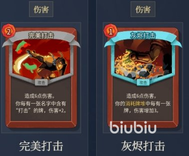 在伤害方面主要选择的是完美打击和灰烬打击,这两个就能够有效保证整个流派的输出上限。完美打击会有基础6点伤害,牌组里面每多一张,那么就可以额外的增加两点伤害,越是往后叠所造成的伤害就更加的恐怖。一开始想要顺利的过渡,还可以选择重振精神以及坚毅,这两张卡牌也是不可以忽视。可以保证血线,又能迅速的清理废牌,让牌组随时都可以保持纯净,给后续的循环铺路。