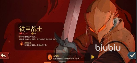 铁甲战士是最后的士兵,拥有80点初始生命值,生存能力还是很不错的,比较适合新手。初始遗物燃烧之血还是比较实用的,每场战斗结束之后都可以恢复6点生命值。