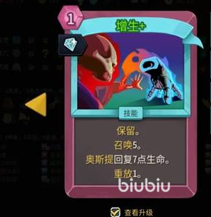想要玩好召唤流,就需要摸透核心的机制。奥斯提就是专属的召唤物。战斗中所有的伤害全部都是由他来承担,就相当于带了一个盾牌。召唤值就是它的血量,叠的越高,那么护盾的效果也就更加的出色。在卡牌选择上就必须要按照优先级,不要乱选择,第1个那自然就应该选择增生。这也是唯一一个可以给奥体卡提升血量的卡,性价比还是比较出色的,建议直接就拿两张。