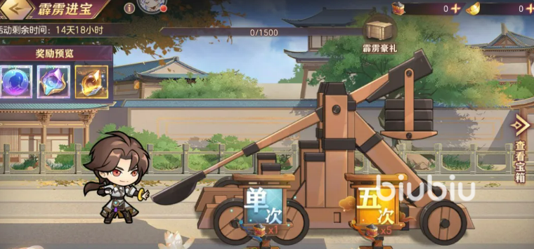 玩家需消耗道具「霹雳火药」驱动投石车,向宝箱发射炮弹。每次成功命中后,系统将随机发放奖励,包括元宝、命魂石、将魂、善灵材料及灵石等资源,掉落结果完全随机,提升探索期待感。