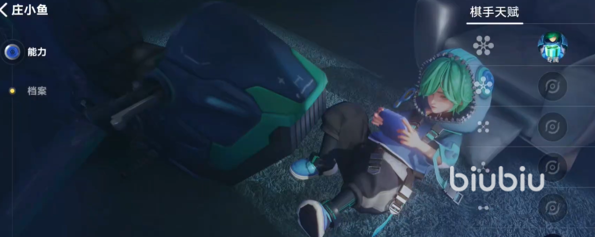 角色形象融合东方美学与未来科技感:头戴遮蔽式兜帽,脚踏悬浮摩托,视觉风格鲜明且富有记忆点。性格设定上,庄小鱼思维敏捷、逻辑清晰,但行为模式偏自由随性,不拘泥于常规操作路径;在对局中始终维持冷静判断,极少出现决策失误,因此作为主力输出位具备极强的战场稳定性。