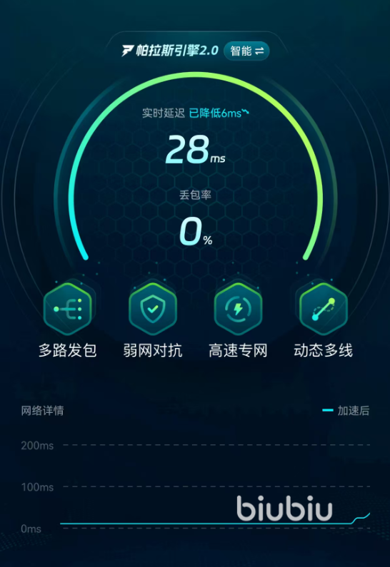 当前biubiu加速器搭载帕拉斯智能引擎,可实时监测端到端延迟变化,并动态优化传输路径。实测数据显示,平均网络延迟降低幅度可达30%,关键指标如UDP丢包率稳定控制在0%水平。稳定的底层网络保障,显著提升了登录成功率与游戏过程中的操作响应一致性。值得一提的是,biubiu目前面向所有手游用户提供免费加速服务,涵盖《梦幻西游》互通版在内的多款热门作品,用户可零门槛体验全功能加速能力。