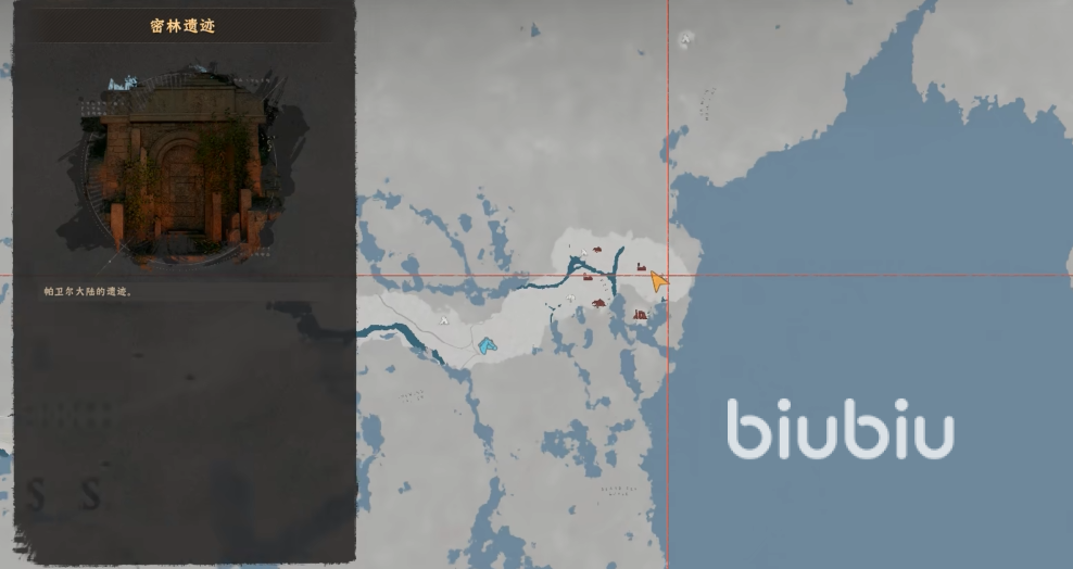 这个道具位置很偏,打开大地图,找到下图所示地点-密林遗迹,鼠标指针标注的房区处。