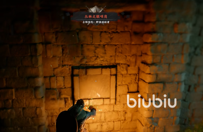 门口右侧墙壁上有个小方块的砖,稍微拉开一点距离,蓄力攻击,打开门进去。