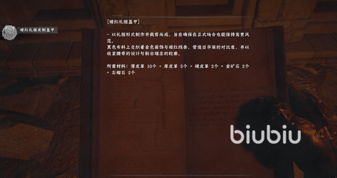 走到深处可以从台子上面拿到暗红礼服盔甲图纸,回到主城就能找到铁匠然后提供材料制作这个小短裙了。