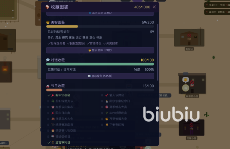 游戏采用纯放置式体验设计,不设操作反馈、无进度条提示、无成就系统。玩家可自由调节时间流速,反复回溯关键日期,比对不同角色在同一时刻的行为差异。后期开放居民招募机制,新增人口将扰动原有社会关系网络,推动小镇从静态闭环转向动态演化模型。文字密度高、叙事留白多、哲学隐喻密集,适合偏好思辨型叙事与慢节奏解谜的玩家群体。