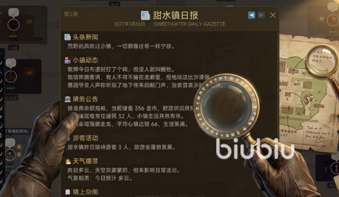 甜水镇地处偏远,常住居民三十余人,每人拥有独立职业、鲜明性格及五维属性(如理性、共情、怀疑、秩序、自主),其言行举止均遵循一套看似自然却高度重复的生活节律。清晨发布的《甜水镇早报》会汇总前一日关键事件,成为玩家解构小镇循环结构的重要线索。随着游戏内时间推移,NPC将陆续触发“觉醒”进程:开始质疑自身记忆的连贯性、挑战既定日程、主动改变社交路径,甚至尝试突破物理空间限制——这一系统并非由玩家触发,而是随模拟时长自然演进。