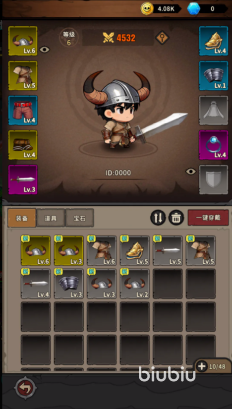 角色成长体系轻量化设计,初始即具备基础战力。每次击败敌人后稳定掉落宝箱,内含装备与宝石两类核心资源。装备可直接穿戴提升属性;宝石支持镶嵌至对应装备插槽,进一步强化战力数值。随着层数递进,玩家等级同步提升,达到10级时解锁宠物系统——首只陪伴伙伴为“竹笋”,后续还可获取更多特性各异的宠物,协同作战应对更高难度内容。