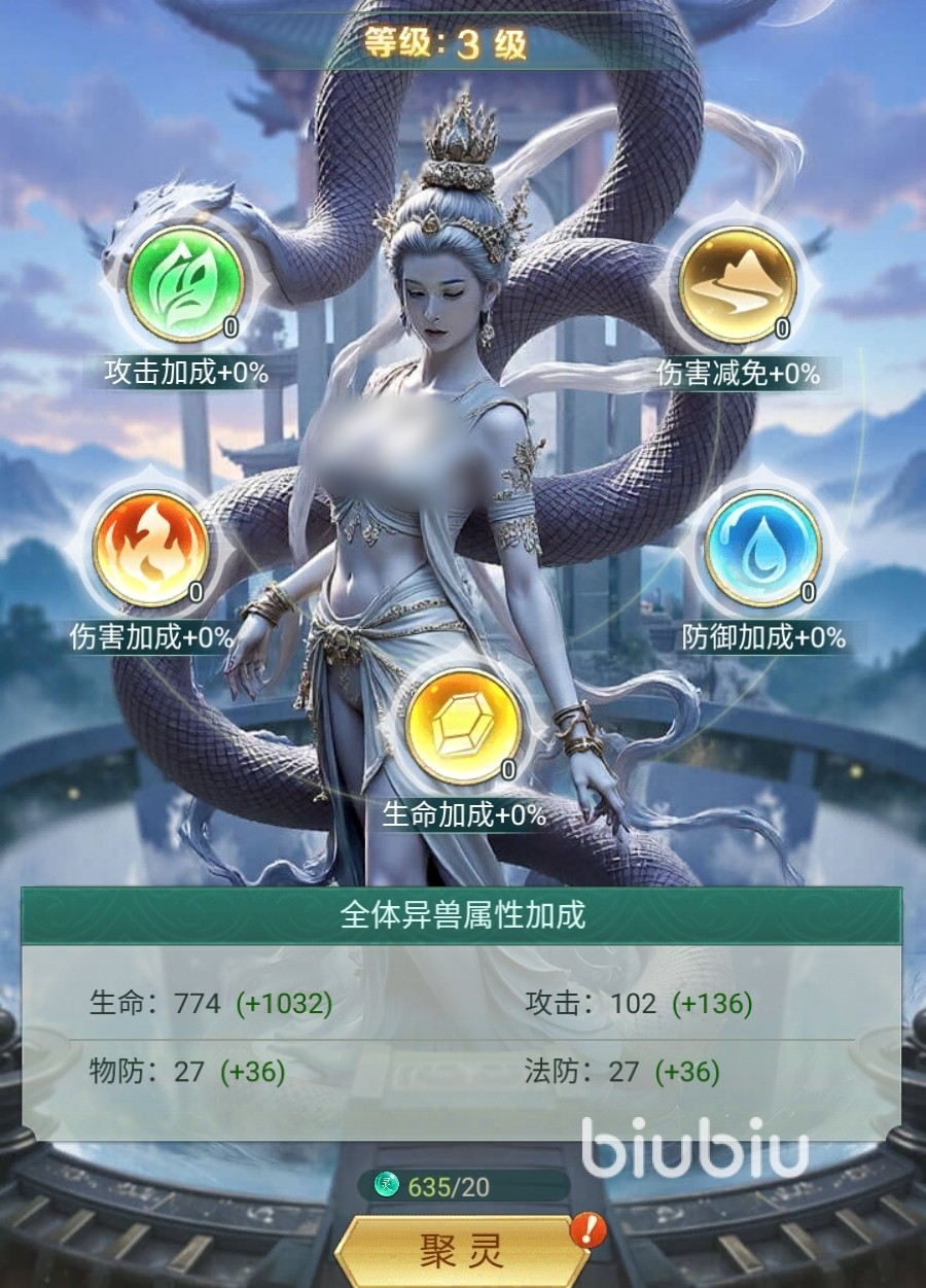 聚灵模块直接作用于异兽的四大基础属性(攻击、防御、生命、速度),加成幅度随等级线性递增,操作简洁、效果直观;而五行之灵则更具策略性——共分金、木、水、火、土五类,每种对应独特强化效果。例如乙木之灵侧重提升攻击力,离火之灵专注增强技能伤害。当五行之灵等级达到5级与10级两个关键节点时,其专属效果还将触发质变式强化,形成阶梯式成长曲线。