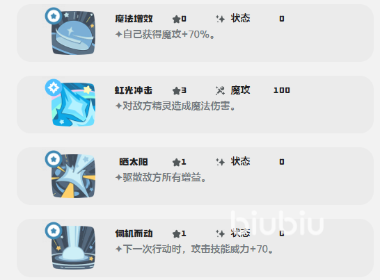 从属性克制关系来看,彩虹独角兽对恶系、幽系精灵具有天然压制效果,能有效反制当前版本主流物理爆发阵容。需注意的是,其自身被草系、幽系技能克制,因此在组队时建议搭配具备草系抗性或净化能力的辅助精灵,以平衡阵容容错率。技能配置方面,输出端涵盖高倍率光系必杀技“泯灭”与“红光冲击”;辅助端则覆盖魔攻强化(魔法增效,提升80%魔攻)、群体驱散(晒太阳,清除敌方全部增益状态)及减益解除(消毒法,移除敌方增益效果),形成攻守兼备的技能闭环。