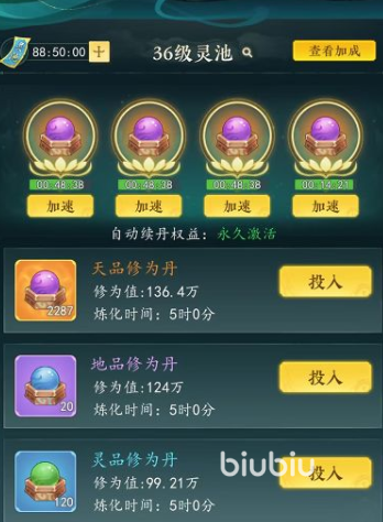 初始阶段装备属性偏低,但已满足基础战斗需求;随等级提升,高阶装备将陆续解锁并支持替换升级。达到指定等级后,灵池系统正式开启——该功能支持对现有修为丹药进行炼化转化,炼化时长依据角色当前境界动态调整,成功炼化后的丹药将大幅提升修为增益效果,进一步推动境界跃迁。修为值随等级同步增长,当战力达标后,即可挑战高难度副本,击杀元灵妖兽赢取丰厚奖励。