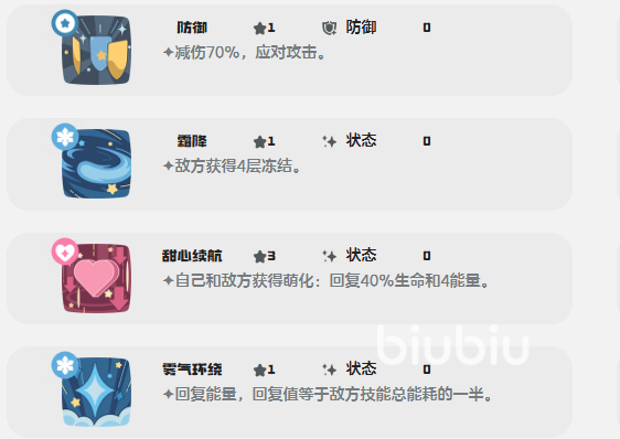 除常规冰系技能外,大耳帽兜还掌握多项特色萌系技:“生日蛋糕”使自身全技能PP消耗永久减少4点;“甜心续航”可为己方全体恢复生命与能量;“撒娇”发动三段连击并叠加“萌化”状态,每次命中提升20点威力;核心输出技“碎冰冰”则根据敌方冻结层数动态增伤——每缺少1层冻结,该技能威力即提升20点;当冻结层数满载时,输出效率达到峰值,同时为队友创造稳定、安全的输出窗口。