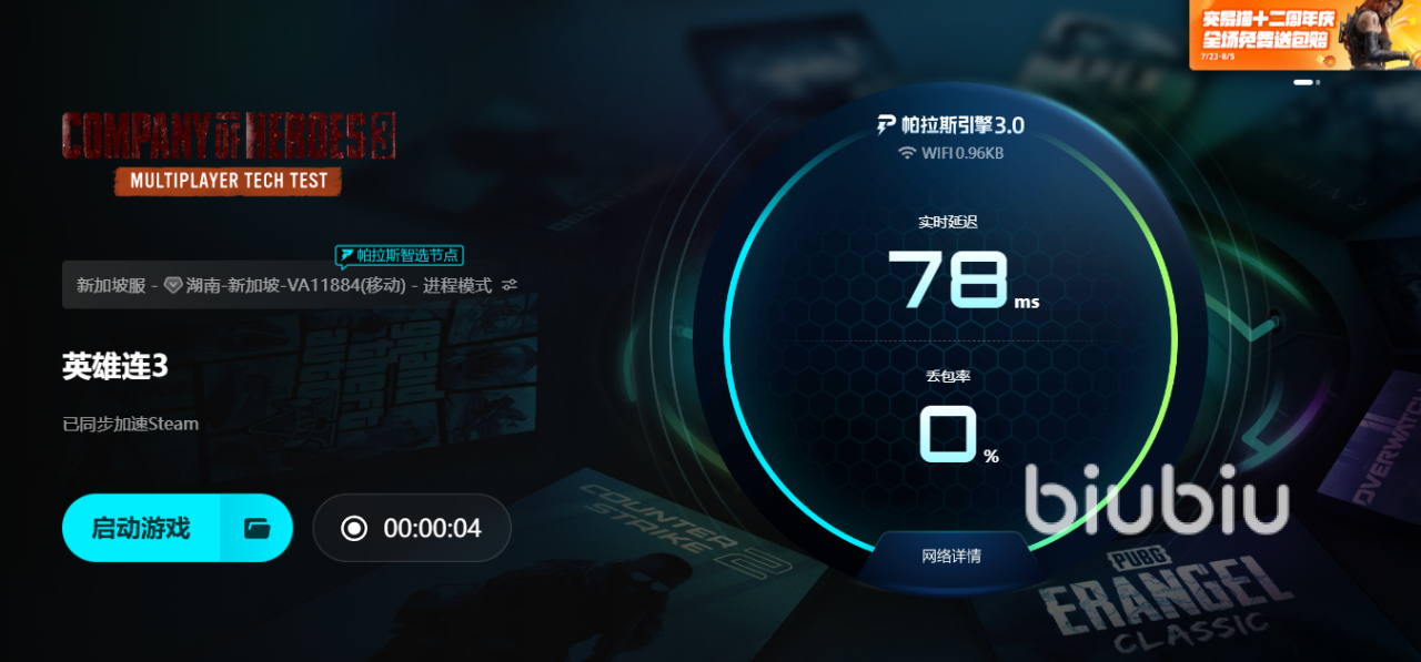 在专业网络优化工具中,biubiu加速器凭借其聚焦游戏场景的技术定位脱颖而出。其搭载的帕拉斯引擎3.0具备毫秒级节点探测能力,可动态识别并切换至《英雄连3》官方服务器最优接入点;同时通过协议层深度适配,显著降低TCP重传率与UDP丢包率。值得关注的是,该方案已联合职业RTS选手Aixleft完成多轮实战压测,在高负载地图加载、实时单位指令同步等关键场景下实现稳定性提升。实测数据显示,启用后平均连接成功率提升至99.2%,首帧加载耗时缩短约41%。