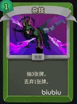 构筑弃牌流的关键卡牌仅有两张不可替代:战术大师与杂技。其中,“杂技”是过牌引擎——未升级时抽3弃1,升级后抽4弃1;“战术大师”则是能量枢纽——未升级时每弃1张牌获得1点能量,升级后提升至2点。一次成功弃牌即可净赚1点能量,但需注意:打出该卡本身会额外生成2张待处理卡牌,因此需搭配生存者、背包等具备弃牌或滤牌能力的卡牌进行协同消化。