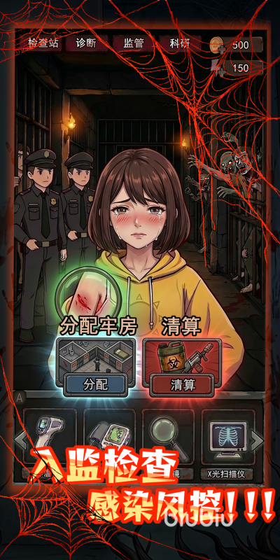 游戏开局即进入高张力情境:锈蚀铁门之外是不断冲击的丧尸潮,门内则是形形色色的幸存者。玩家需在收容环节完成关键判断——区分轻微擦伤与致命咬痕,避免感染源混入监区。建设路径从基础牢房起步,逐步铺设高压电网、扩建监舍单元、清缴囚犯私藏的黄金与武器,并将其转化为食物、药品、建材等核心物资。同时,通过合理编排劳改任务,驱动幸存者持续产出资源,维系监狱日常运转与防御升级。