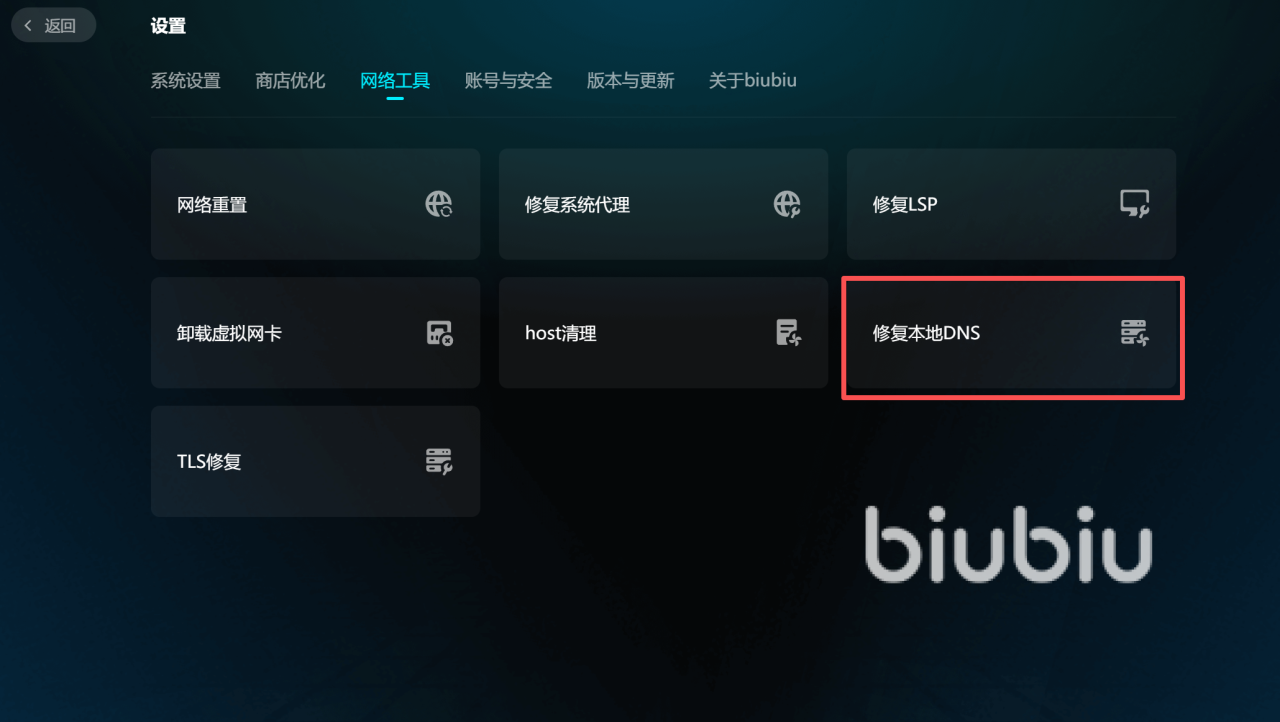 找到问题就好办多了,小编给大家整理了一套实测有效的解决步骤。第一步也是最关键的一步,小伙伴们可以先用biubiu加速器自带的工具箱做个体检,重点使用里面的DNS修复和网卡修复功能把底层网络环境清理干净。
