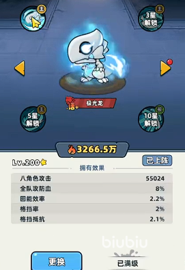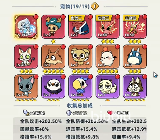 宙斯之鹰作为当前强度最高的神话宠物,建议固定置于一号位承担主要输出职责。二号位在尼伯雷根与小翼间按获取进度灵活选择:前者提供全局暴击率加成与怒气加速,后者侧重单体爆发。三号位以功能性与属性值为优先考量,达达可提供均衡增益,而极光龙则具备更强战略价值——其主动技能造成群体伤害并附加持续效果,被动每10秒为全队叠加一层伤害增益(最高三层,总计30%),且升星后层数上限同步提升,资源清剿效率显著优于常规宠物。