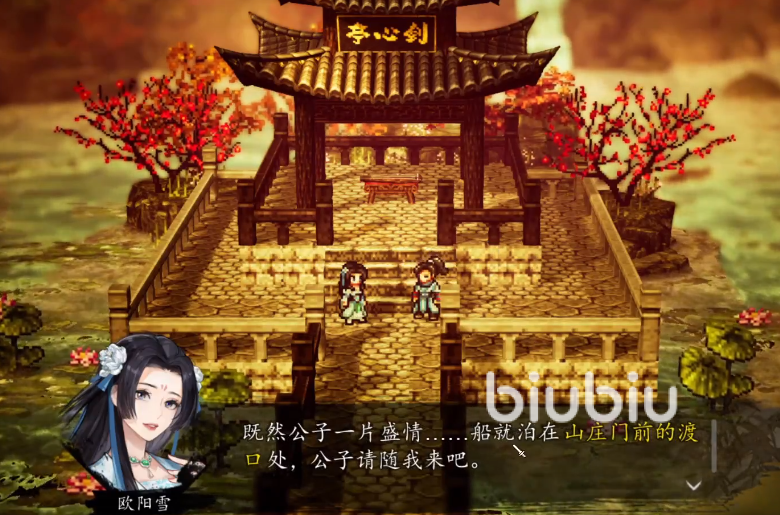 游戏中一项关键剧情任务为“姑苏灯会”支线。该任务需玩家先行抵达名剑山庄,在山庄水域中央的剑心亭中邂逅NPC欧阳雪。通过完整对话触发任务链后,欧阳雪将作为可加入队友随行前往姑苏城。其基础属性设定为:气血值与真气值均属队伍前列,具备稳定输出与续航能力;当与玩家好感度提升至指定阶段,还可解锁专属武学传承。