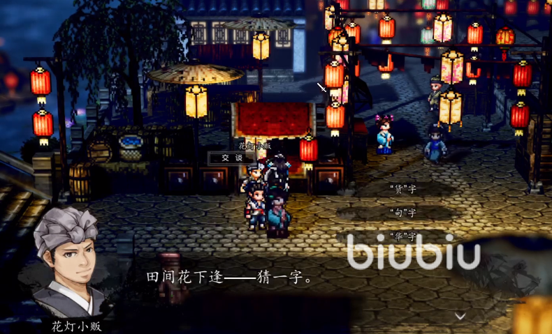 抵达姑苏城后,沿小桥向右前行即可发现灯谜大会摊位。此处由一名小贩主持,共设四道字谜题,全部答对方可获得关键道具“琉璃莲花灯”,并同步解锁后续剑谱奖励。该环节不仅考验文字推理能力,亦是推进欧阳雪好感度的重要节点——赠送花灯可额外增加10点好感值。