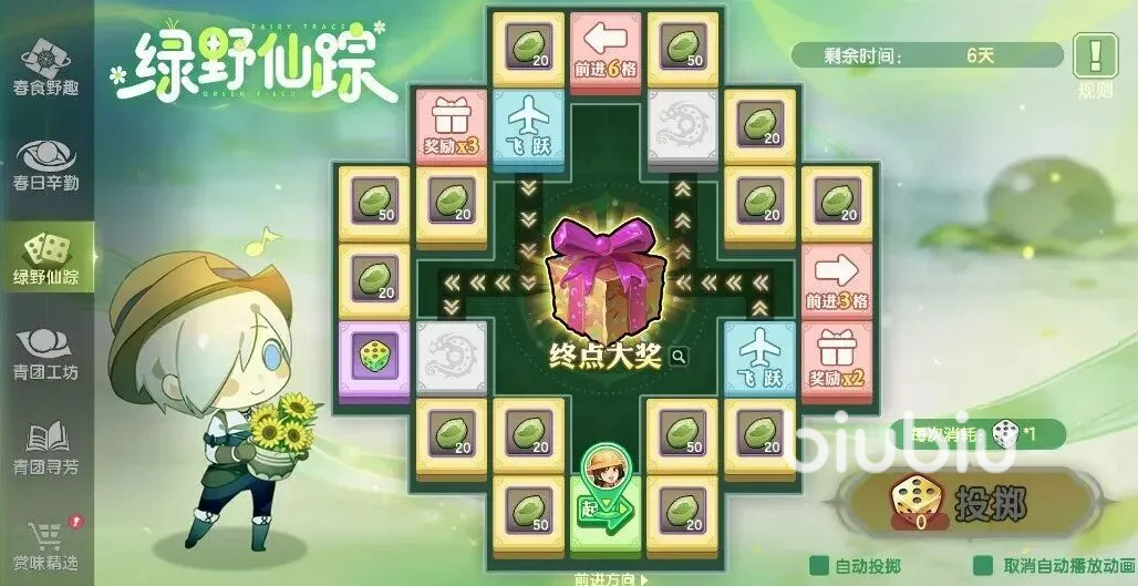核心玩法之一“绿野仙踪”大富翁采用回合制行进机制。玩家消耗踏青骰子驱动角色沿路径前进,途经格子均可获得踏青积分;抵达终点时额外发放200点积分,并有机会触发隐藏事件格,获取双倍积分或特殊道具。踏青骰子主要通过翻牌与任务获取,建议优先提升其储备量以加速积分累积效率。