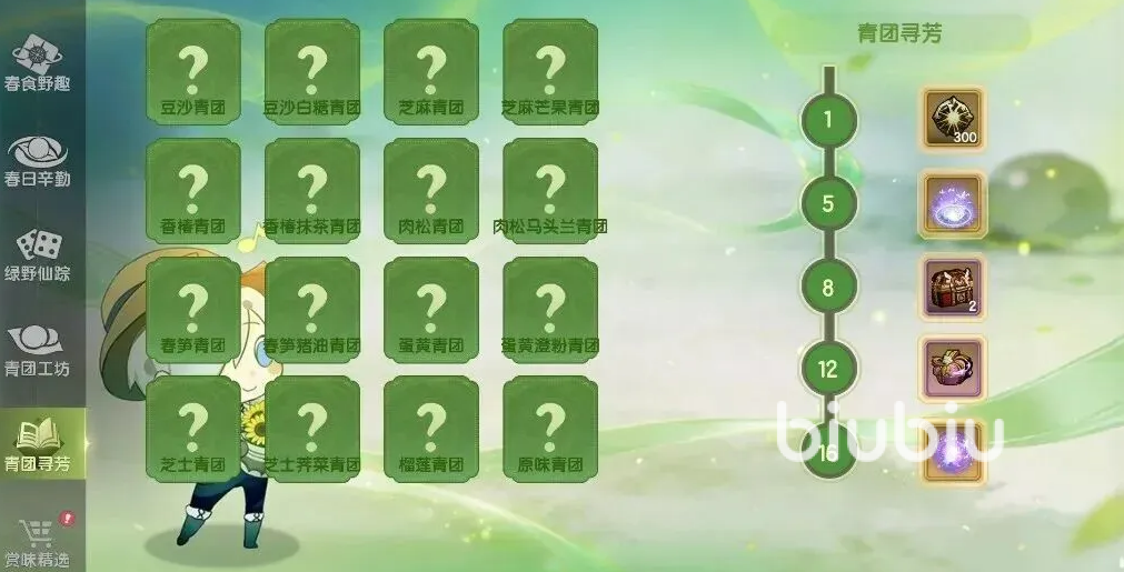 与之联动的是“青团寻芳”兑换系统:玩家每成功解锁一种青团配方,即可在此板块领取对应数量的限定福利。两项玩法形成闭环,协同推进资源利用率最大化。