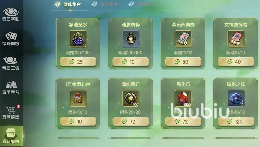 压轴板块“春味集合”为积分集中兑换中枢。此前积攒的所有踏青积分均可在此使用,兑换层级分为三档,需逐级解锁:首层开放基础养成材料兑换;二层起逐步开放萌宠、非绑定A级首饰、突破印章;最终层提供无双符文等顶级成长资源。建议玩家优先保障积分储备,冲刺高阶兑换项以提升整体收益比。