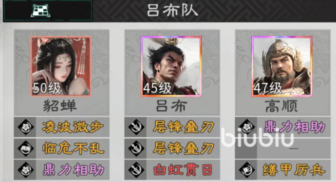 第一套推荐为「吕布追击流」。该体系以吕布为核心输出引擎,依赖其觉醒后大幅提升的单体爆发与追击触发频率。当吕布、貂蝉、高顺三人齐备时,可形成闭环追击链:吕布每回合最多触发6次追击,而貂蝉与高顺均能通过吕布的追击格子获得额外追击机会。需注意,高顺作为统帅,其统率属性必须高于敌方目标方可稳定发动追击;貂蝉则需保证魅力属性显著领先于其他武将,以强化追击联动效率。装备方面,吕布必配破军四件套,重点提升暴击率与爆伤,最大化减员后的收割能力;貂蝉与高顺则优先选择霸王两件套,侧重魅力属性加成,进一步优化追击响应机制。