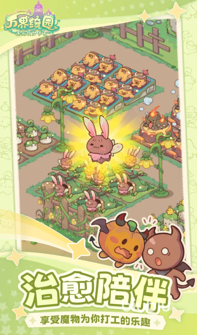 初入庄园,玩家将邂逅独创的魔物共生系统——这些形态各异、性格鲜明的魔物并非传统宠物,而是庄园中不可或缺的家庭成员与协作伙伴。它们依天性自然分布于庭院各处:有的悉心照料灵植花圃,有的在工坊中专注 crafting,有的则自发组织轻松诙谐的主题派对。玩家无需繁复操作,仅需通过合理空间规划与日常互动,即可激活其隐藏能力,协同维系庄园生态运转,在无声默契中感受治愈系经营的独特节奏。