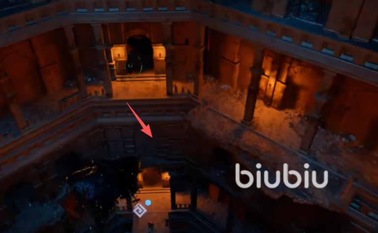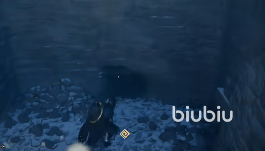 落点为地下暗河,沿河道前行抵达破败的古代地下宫殿。终点处被金属栅栏围合,需分别点亮门左右两侧的古老石灯,栅栏解除后进入,武器静置于平台之上。
