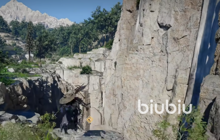传送至图示山脉交汇处,寻找两座山体夹缝形成的垂直深沟,纵身跃入。