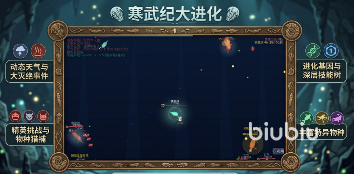 游戏采用“进化模拟+实时策略对抗”双核机制。玩家从单细胞生命起步,通过捕食、竞争、环境适应等方式积累进化点数,逐步解锁更复杂的生物形态与能力分支。每一条进化路径均具备独立技能树与成长维度,支持自由决策——是向敏捷型掠食者发展,还是强化防御结构构建生态位优势,均由玩家自主定义。