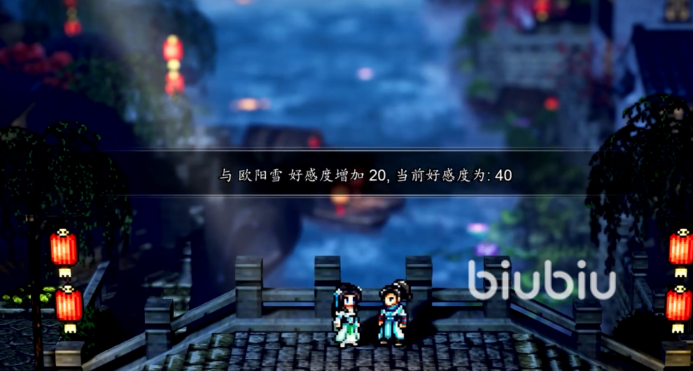 进入花灯节任务阶段(该事件由主线自然触发,无需额外寻找),向欧阳雪赠送花灯可获+10好感;随后若选择“陪伴观看天灯”,将额外获得+20好感。两项合计+30好感,是中期最集中的单次收益节点。