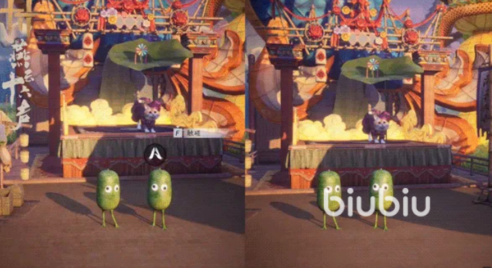 第三段梦境呈现为流光溢彩的元宵花灯集市:千盏彩灯连缀成河,摊贩鳞次栉比,光影流转不息。在此场景中,角色形象将随机转化为圆润可爱的Q版形态,初始位置位于水果摊旁。玩法设计极简,仅需双人结伴缓步漫游集市,在限定时间内自然抵达终点即可,全程无战斗、无解谜、无时间惩罚,主打轻松沉浸式体验。