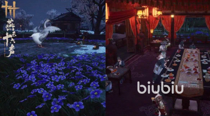 次段梦境转场至喧闹古风客栈:朱红灯笼高悬檐角,八仙桌列满佳肴,酒客谈笑喧哗,烟火气十足。此处考验双人默契配合能力——双方将同步触发独立事件链,需通过语音或操作预判及时援手,例如传递关键道具、遮蔽视线干扰、或同步开启机关。整体节奏明快松弛,无高强度战斗压力,侧重临场协作与情境互动。