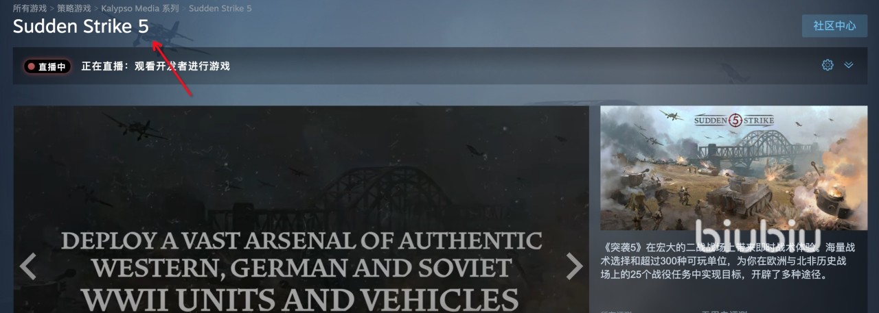 这个游戏的英文名字叫Sudden Strike 5,翻译成中文就是《突袭5》特别好记。现在Steam商店页面已经上线了你直接在搜索框里随便搜哪个都能找到它。找到之后赶紧加入愿望单,等发售的时候会自动提醒你免得你忙忘了错过。