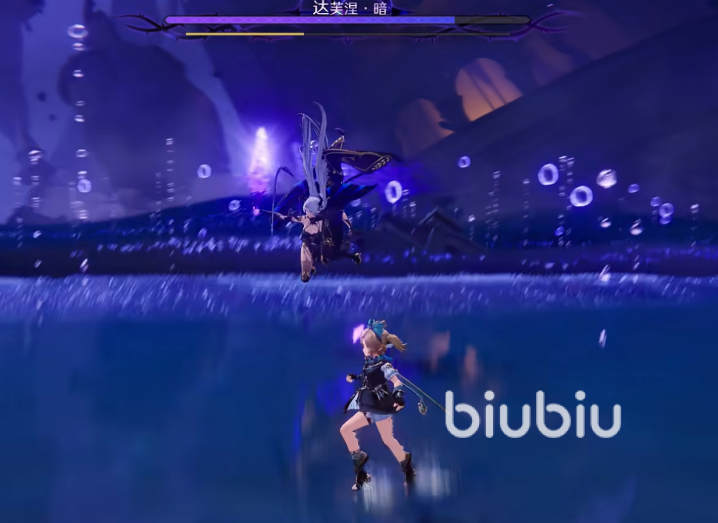 达芙涅隶属暗属性阵营,战斗中全程保持浮空状态,攻击判定范围广、节奏快,对玩家走位与闪避反应提出较高要求。近战阶段她以长剑突进,连招迅捷;但存在明显机制弱点:对光系角色具备显著克制反馈。实战中建议优先部署光属性颂灵者,并在她升空蓄力时主动拉远距离或执行精准翻滚规避,可大幅降低战斗压力。