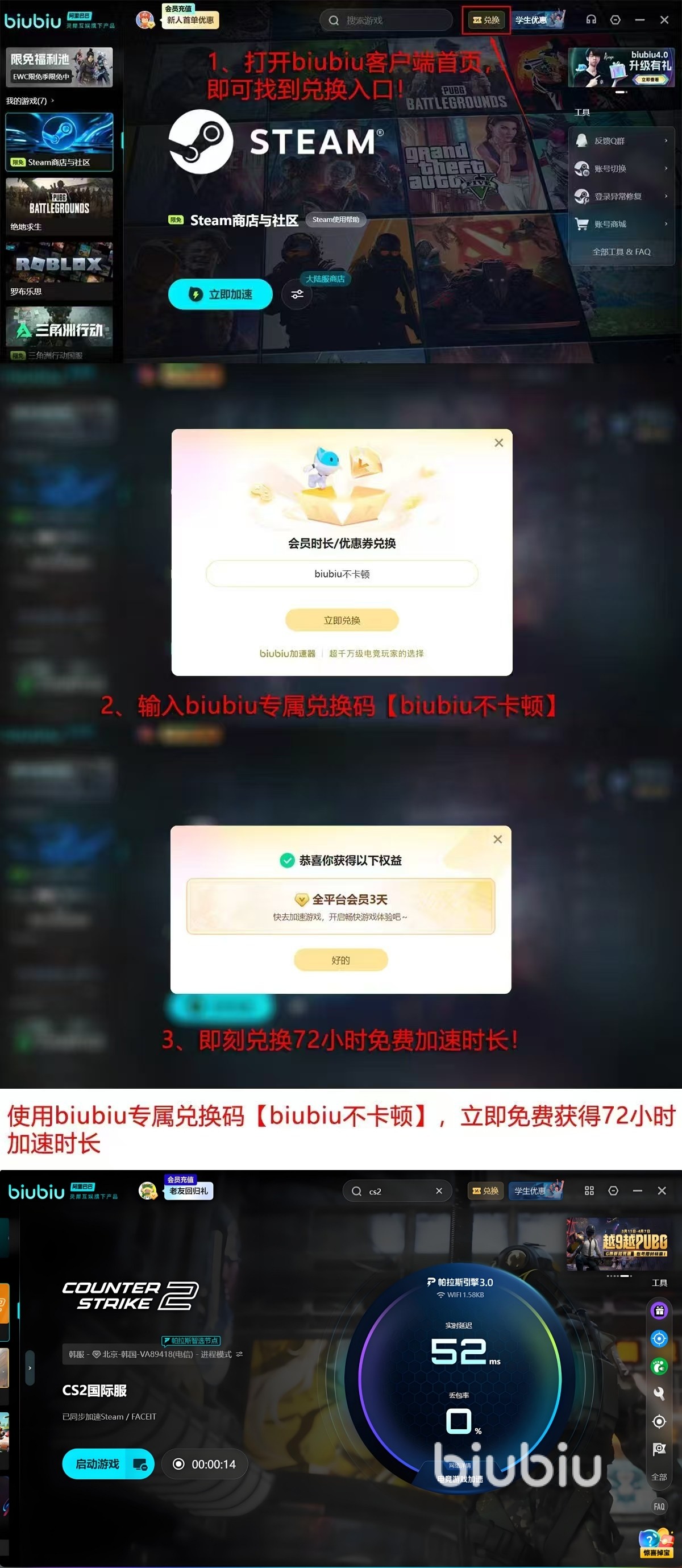 目前平台正开展限时运营活动。新用户完成首次注册并登录后,即可领取24小时免费加速时长;叠加输入兑换码【biubiu不卡顿】,还可额外获得72小时免费使用权,总计享96小时零成本加速体验。已注册的老用户同样可通过兑换码领取加赠时长。学生群体可凭有效学籍认证申领专属权益。此外,购买双年卡、年卡及季卡等长期套餐均享有阶梯式价格优惠,订阅周期越长,单位时间成本越低。