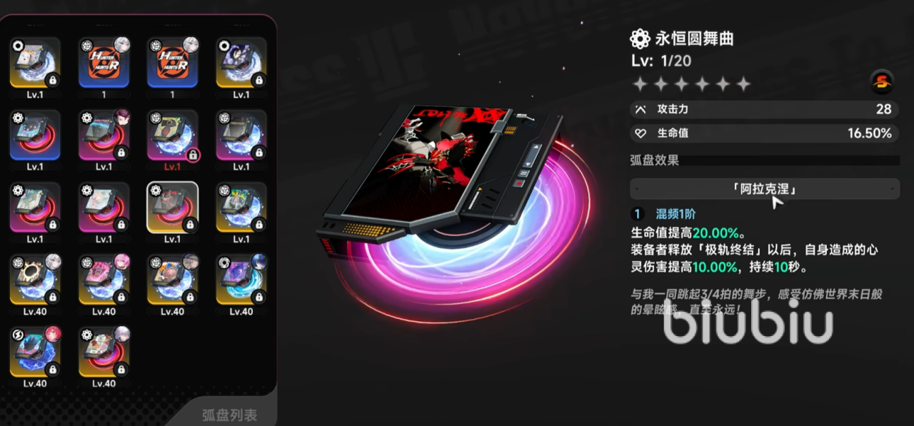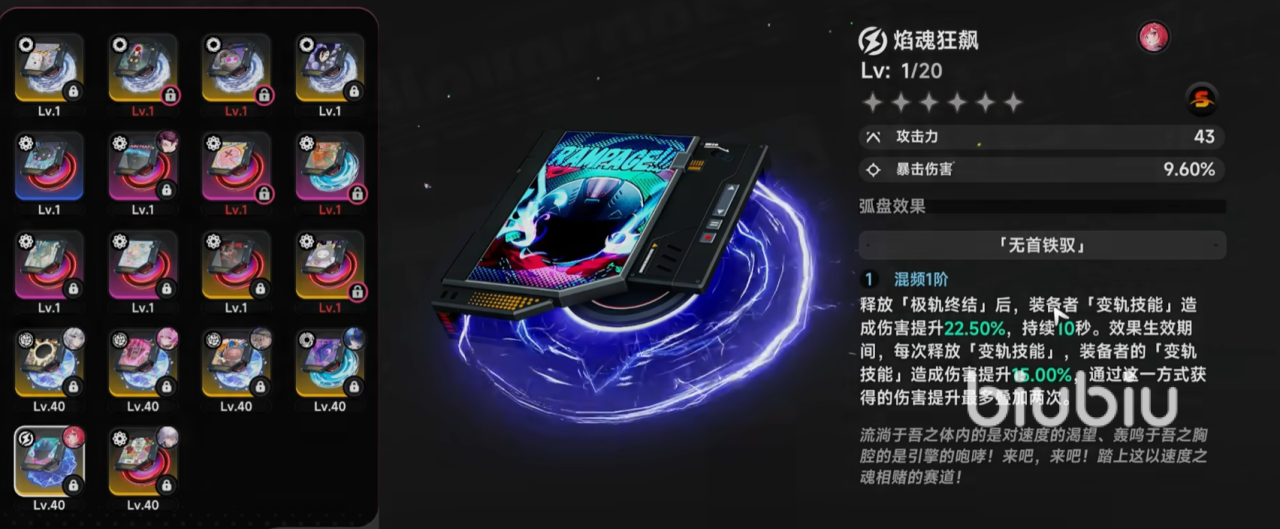 永恒圆舞曲弧盘聚焦生存与持续输出平衡,适用于终结技驱动型武将角色。其效果为:释放“极轨终结”时,角色自身“内心受伤”状态增加10%,但该状态在10秒内不生效。这一设定有效缓解终结技使用后的脆弱期,在维持高伤输出的同时增强战场续航稳定性。焰魂狂飙弧盘则代表极致爆发方向,为毕业级输出装备——完成“极轨终结”后,“变轨技能”释放频率由每秒3次提升至每秒4次,且每次释放均使伤害提升25%,总计叠加10%伤害增幅。