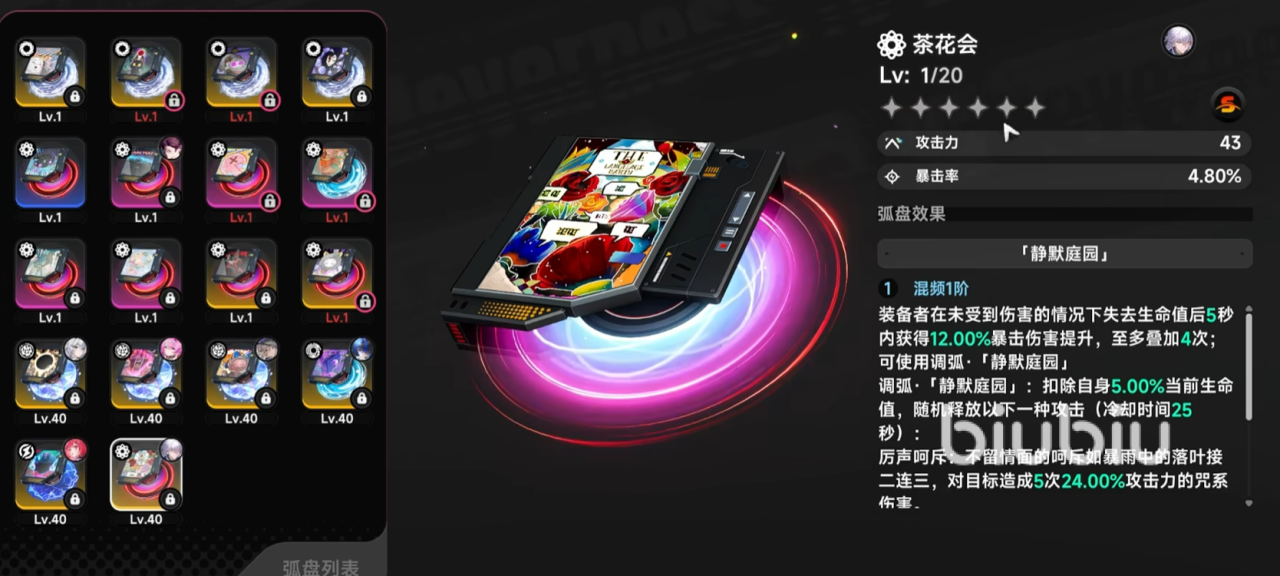 茶花会弧盘为S级机动向专属装备,定位清晰:将闪避能力转化为可观的暴击伤害增幅。具体机制为——角色在连续5秒未受任何伤害时,生命值自动降低,同时获得12%暴击伤害提升;该效果可叠加至4层,最高达成48%暴击伤害增益。此设计显著强化了高频率走位、精准格挡与瞬时闪避的操作价值,尤其适配夜莺、雷欧等依赖位移与规避构建输出循环的角色,成为单兵突进与精英速杀流派的核心配置。