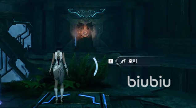穿过前方门洞,跳跃至对岸平台,清除下方小怪后,由缺口处下降。顺势跃至相邻平台,歼灭新刷出的敌方单位。地面散落若干武器部件,须依序装配至对应编号机器人——装配错误将导致机关失效,门禁无法开启。成功开启后,可优先采集右侧石碑旁的经验宝箱再进入主区域。